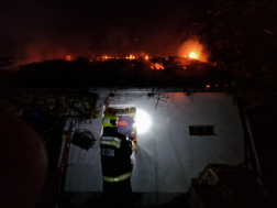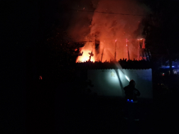 Szerdán későn este kigyulladt és teljes terjedelmében égett egy hétvégi ház Pápán, a Prohászka Ferenc utcában. A hatvan négyzetméteres épület födémszerkezete beszakadt. A város hivatásos tűzoltói több oldalról oltották a lángokat. Az épületből egy gázpalackot kivittek, az ingatlan átvizsgálása közben a ház egyik helyiségében egy embert találtak, akinek az életén már nem lehetett segíteni. Az épületben egy fatüzelésű kályha üzemelt, így nem zárható ki, hogy a tüzet egy kipattanó szikra okozhatta. A keletkezési okokat és körülményeket a katasztrófavédelem tűzvizsgálati eljárás keretében tárja fel.