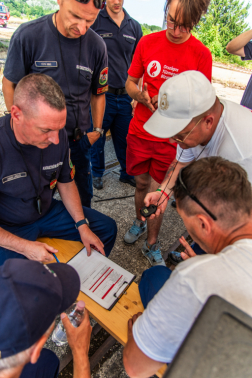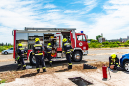 A műszaki mentési feladat szintén sokrétű volt. Egy, a tűz elől menekülő ember a gépjárművével elgázolt egy szintén menekülő gyalogost, majd amikor a sofőr kiszállt a kocsiból, figyelmetlenségből egy fedetlen aknán keresztül a pincébe esett. A tűzoltóknak mindkét sérültet ki kellett szabadítaniuk, majd hordágyra tenni és elvinni őket a kijelölt pontra. A második mentési feladatnál egy ember a távolból, egy fákkal borított területről figyelte az eseményeket. A feltámadó nagy erejű szél több fát kidöntött, az egyik ráborult a nézelődőre. A tűzoltóknak ki kellett szabadítaniuk őt a fa alól, majd hordágyon biztonságos helyre vinni, ahol a mentők megkezdhették az ellátását.