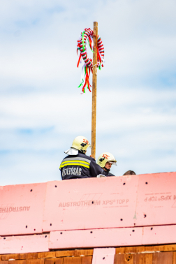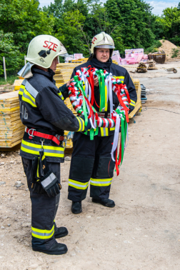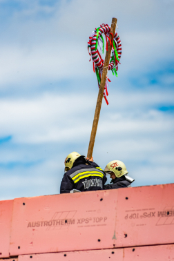 Az igazgató ismertetőjét követően a tűzoltók a tömlőszárító toronyra felhelyezték a bokrétát, majd a laktanya-látogatáson résztvevők Péli Ferenc László tűzoltó alezredes, ingatlangazdálkodási osztályvezető vezetésével megtekinthették az építkezés jelenlegi készültségi fokát.