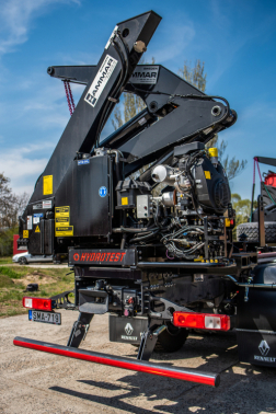 A három speciális Renault gépjármű nagy tömegű eszközök mozgatásával, valamint egyéb logisztikai feladatok ellátásával segíti a mentőegységek munkáját a továbbiakban. A két háromtengelyes, összkerékmeghajtású oldalrakodó konténerszállító nemcsak közúton, hanem közepes és nehéz terepviszonyok között is több mint tíz tonna mentési felszerelés mozgatására használható. Speciális körülmények között is képes akár egy húszlábas konténert két perc alatt a gépjármű bármelyik oldalára letenni, alkalmas például az árvízi védekezéshez szükséges eszközök szállítására. A beszerzett új nyerges vontató két félpótkocsi vontatására is használható, azok segítségével a nagyobb káreseményekhez tudja szállítani az irányítási feladatok támogatására létrehozott úgynevezett mozgó vezetési pontot és a mentéshez szükséges speciális gépeket.