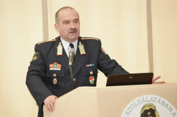 Hogy mi a katasztrófavédelem szerepe az éghajlatváltozás okozta természeti katasztrófák megelőzésében, arról dr. Tóth Ferenc tű. dandártábornok, országos polgári védelmi főfelügyelő beszélt. Mint mondta, abból kell kiindulni, hogy a globális klímaváltozásnak vannak lokális (regionális) hatásai, és ezek új kihívások elé állítják a katasztrófavédelmet. Új módszerek, eszközök stratégiák alkalmazását, valamint az állomány képzését kívánják meg – szögezte le a tábornok. Az éghajlatváltozás hatásaira példaként hozta fel a 2001-es nagy tiszai árvizet, a 2005-ben bekövetkezett mátrakeresztesi villámárvizet, illetve a 2012-es bugaci bozóttüzet, valamint a Duna rekordokat megdöntő tavalyi áradását. A klímaváltozás kihívásaira adandó szakmai válaszok három elvi pilléren nyugszanak – fejtette ki a folytatásban Tóth Ferenc, ezek az előrelátó kockázatazonosítás, -értékelés és a kockázatkezelés, valamint az arra való megfelelő felkészülés. Ugyancsak fontos szempont a határon átnyúló együttműködések bővítése, erre kiváló példa a SEERISK-projekt – hangoztatta az országos polgári védelmi főfelügyelő. A projekt konkrét megoldásai közül kiemelte a térinformatikai eszközök bővítését, és a beavatkozásokhoz szükséges eszközpark továbbfejlesztését. A program emberi erőforrást érintő részét illetően a mind több önkéntes bevonásáról, az új kihívásokkal érintett intézmények szoros együttműködéséről, továbbá a társadalom kitettségének (sérülékenységének) és veszélyeztetettségének folyamatos vizsgálatáról ejtett szót. A megváltozott körülményekre szabott célzott megoldások kifejlesztése és elterjesztése közben természetesen a költséghatékonyságra is ügyelni kell – hangoztatta végezetül Tóth Ferenc.
