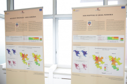 A konferencia további részében Székely Miklós, a projekt szakmai koordinátora a kockázatértékelés elméleti módszertanát ismertette a jelenlévőkkel, majd Perge Kinga tű. főhadnagy, a BM Országos Katasztrófavédelmi Főigazgatóság Térinformatikai és Távközlési Osztályának munkatársa térinformatikai módszerekkel mutatta be az elméleti kockázatelemzés és -értékelés gyakorlati hasznát. Mintaterületeken demonstrálta, hogy is kell elképzelni a kockázatértékelés térképi megjelenítését, akár lakóházakig lemenően. Részletesen bemutatta a szerbiai Magyarkanizsa község aszály-veszélyeztetettségét és ebből fakadóan a vegetációtüzek előfordulásának veszélyét, majd a hazai mintaterületről, Siófokról is szót ejtett. Az előadásból kiderült, hogy a Balaton parti várost leginkább a szélviharok sújtják, emiatt az itteni épülettetők számítanak különösen sérülékenynek. A főhadnagy a példák sorában említést tett a szlovák Senica településről is, amely főként az árvízi veszélynek van kitéve. A térképi megjelenítéseket a konferencia résztvevői meg is tekinthették ki is próbálhatták.