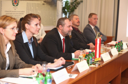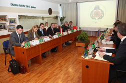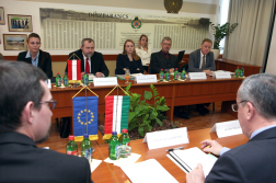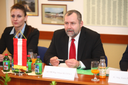 Dr. Bakondi György tű. altábornagy, országos katasztrófavédelmi főigazgató köszöntötte osztrák kollégáját, majd ismertette a napirendet és bemutatta a magyar vezetőket, dr. Tollár Tibor tű. vezérőrnagyot, gazdasági főigazgató-helyettest, Sallai Péter tű. ezredest, Győr-Moson-Sopron és Erdélyi Krisztián tű. ezredes, Vas megyei katasztrófavédelmi igazgatót, valamint Kiss Tamás tű. alezredest, a nemzetközi főosztály vezetőjét. Osztrák részről Johann Bezdeka, Ausztria szövetségi belügyminisztériumának polgári és katasztrófavédelmi főigazgatója köszönte meg a meghívást, hangsúlyozva, hogy Ausztria és Magyarország katasztrófavédelme az eltérő struktúra ellenére intenzív kapcsolatokat ápol egymással. A delegáció vezetője ezt követően bemutatta a kíséretében lévő rendészeti attasét, valamint az országos és tartományi vezetőket, szakembereket.