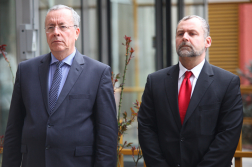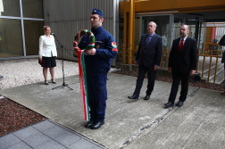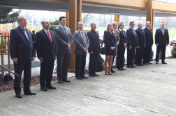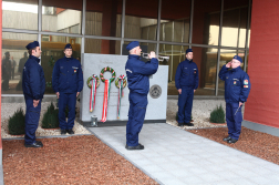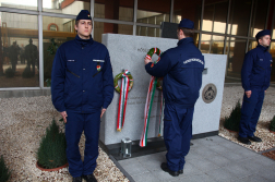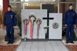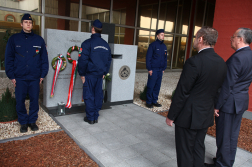 A főigazgatói találkozó utolsó momentumaként Johann Bezdeka és Bakondi György megkoszorúzta a katasztrófavédelem és jogelőd szervezetek hősi halottainak emlékére állított emlékművet a BM OKF épületénél.