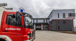 A gyöngyösi Bethlen Gábor utcában felépült új épületegyüttes április huszonharmadika óta ad otthont a katasztrófavédelem munkatársainak és a város hivatásos tűzoltóinak. A sajtó képviselői dr. Zólyomi Géza tűzoltó ezredes, a gyöngyösi katasztrófavédelmi kirendeltség vezetőjének kalauzolásával tekintették meg a Gyöngyös közepén található, csaknem egyhektáros telken megépült laktanyát. Az új komplexum nagy előnye, hogy a káresethez riasztott tűzoltó gépjárművek gyorsan, akadálymentesen tudják megközelíteni a fő forgalmi utakat, a laktanyából négy irányba lehet kihajtani. Az épület a jó hőszigetelésű, korszerű építési anyagoknak, épületszerkezeti elemeknek, épületgépészeti technológiáknak köszönhetően az ország legmodernebb tűzoltólaktanyáinak egyike.