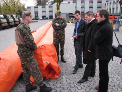 A svájci Külügyminisztérium meghívásának eleget tévő magyar katasztrófavédelmi delegáció négy kanton tűzoltó-parancsnokságát és a katasztrófa-elhárításban szerepet játszó egyéb szervezeteit tekintette meg. Kiemelt figyelmet szenteltek a Svájcban már az árvízi védekezésben régóta alkalmazott felfújható, illetve fixen telepíthető mobilgátak különböző típusainak és a bevetési tapasztalatoknak. A Dr. Demény Ádám tű. ezredes vezette küldöttséget a helyi logisztikai és polgári védelmi szakemberek kisebb-nagyobb hegyvidéki településekre, a kantonok fővárosába és más nagyvárosokba kísérték el, a tűzoltó-parancsnokságokon előadásokon és helyszíni bemutatókon vettek részt. A magyar szakemberek az út során szerzett tapasztalatokat a közeljövőben esedékes hazai mobilgátbeszerzésnél használják majd fel. Ez a Svájci Hozzájárulás program finanszírozásában zajlik, közel egymilliárd forint értékben.