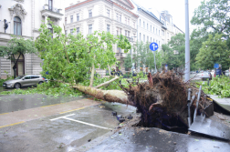 Több mint négyszáz bejelentés érkezett a Fővárosi Katasztrófavédelmi Igazgatósághoz a vasárnap délutáni viharos erejű szél és felhőszakadás miatt. A hivatásos és önkéntes tűzoltókat, valamint az önkéntes mentőszervezeteket kidőlt fák, leszakadt vezetékek, valamint vízkárok miatt riasztották Budapest-szerte. Több helyen metróaluljárókat is elöntött az eső, de számos fővárosi közlekedési főútvonal is víz alá került. A belvárosi Alkotmány utcában egy hatalmas platánfát gyakorlatilag gyökerestül csavart ki a szél, ráadásul úgy, hogy az egy arra haladó furgonra zuhant, amelyben egy család ült, de szerencsére senki nem sérült meg. A fát a budapesti tűzoltók láncfűrésszel feldarabolták, majd megszüntették a forgalmi akadályt. A tizenegyedik kerületi Kovászna utcában szintén egy öles fa okozott problémát, ugyanis az a szél miatt megtört és csupán egy mellette álló másik fa tartotta. A veszélyes helyzet megszüntetéséhez komoly technikai háttér is kellett a fővárosi tűzoltóknak – tűzoltó-autódaru és létrás tűzoltóautó is érkezett a helyszínre.