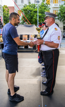 Szombathely Fő tere egy nagy tűzoltójátszótérré alakult át pénteken, ugyanis az idén itt tartották meg a versenyt, amelyen az ország legerősebb tűzoltóját keresték. A regisztrációs sátornál már reggel sorakoztak a hivatásos, önkormányzati és önkéntes tűzoltók, valamint a honvédségi állomány tagjai. Az indulók között nők és férfiak egyaránt voltak. Nincs olyan része az országnak, ahonnan ne jött volna valaki a megméretésre, sőt érkeztek versenyzők Romániából, Horvátországból, Szlovákiából és Ausztriából is. Ismerős arcokra is lehetett bukkanni, hiszen azok, akik már évek óta jobb és jobb időket futnak, idén is alig várták, hogy bizonyítsanak. A verseny megnyitóján beszédet mondott dr. Bognár Balázs tűzoltó dandártábornok, a Vas Megyei Katasztrófavédelmi Igazgatóság igazgatója és dr. Nemény András, Szombathely Megyei Jogú Város polgármestere. A rendezvényt a helyszínen tekintette meg Gulyásné dr. Gyurka Tímea tűzoltó ezredes, a BM Országos Katasztrófavédelmi Főigazgatóság hivatalvezetője, Fülep Zoltán tűzoltó ezredes, a főigazgatóság tűzoltósági főfelügyelője és Ördög István tűzoltó ezredes, az Országos Katasztrófavédelmi Sportegyesület ügyvezető elnöke is.