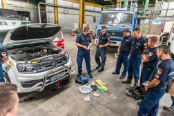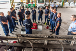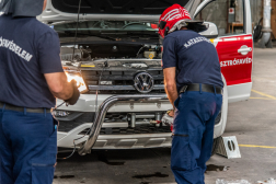 Nemecz Péter tű. alezredes, a Katasztrófavédelmi Oktatási Központ műszaki szakcsoportjának vezetője azoknak az eszközöknek a használatába vezette be a szakembereket, amelyek a mobil egység speciális terepjáróinak használatával kapcsolatosak, így a csörlőzés és az áramfejlesztő használata került napirendre.
