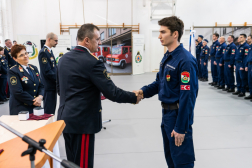 A Katasztrófavédelmi Oktatási Központ kibocsátó ünnepségén 148 újonnan végzett tűzoltó tett ünnepélyes esküt. Az újoncok az öthónapos képzésük végét jelentő kibocsátó ünnepséget követően a napokban kezdik szolgálatukat az ország különböző tűzoltó-parancsnokságain. Az ország minden vármegyéjébe és a fővárosba is kerülnek, a legtöbb újonc Budapesten, valamint Pest és Hajdú-Bihar vármegyében csatlakozik az állományhoz. A 148 most végzett tűzoltó mellett a Nemzeti Közszolgálati Egyetem Katasztrófavédelmi Intézetének tíz tisztjelölt hallgatója is esküt tett, így összesen 158-an tettek fogadalmat.