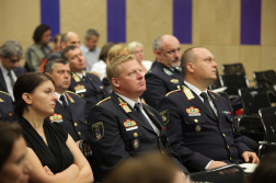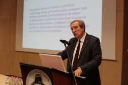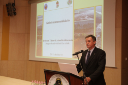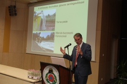 A katasztrófavédelmi főigazgató-helyettes Dobson Tibor tűzoltó dandártábornoknak, a Rendvédelmi Kar elnökének adta át a mikrofont, aki a vörösiszap-katasztrófa kommunikációs feladatairól és sajátosságairól tartott előadást.