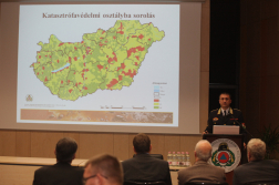A katasztrófavédelem szervezetét dr. Góra Zoltán tűzoltó vezérőrnagy képviselte, aki beszédében kiemelte a szervezet megelőzésre összpontosító munkáját. A BM Országos Katasztrófavédelmi Főigazgatóság helyettes vezetője az egységes iparbiztonsági hatóság létrejöttének előzményeiről és körülményeiről tartott előadást, majd bemutatta a 2012. január 1-jén megalakult egységes, integrált hivatásos katasztrófavédelmi szervezet szerteágazó munkáját. A főigazgató-helyettes ezt követően a katasztrófa utáni megelőzési feladatokról szólt, külön hangsúlyozva a települések katasztrófavédelmi osztályba sorolását. Góra Zoltán összefoglalva kijelentette, hogy a katasztrófavédelem immáron minden korábbinál hatékonyabban tölti be rendeltetését, látja el a lakosság élet- és vagyonbiztonságának, valamint a létfontosságú rendszerek működésének védelmét.