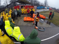 Február tizenötödikén megkezdődött a Svájci-Magyar Együttműködési Program keretében beszerzett mobilgátrendszerek használatára történő felkészítés. A BM Országos Katasztrófavédelmi Főigazgatóság Gazdasági Ellátó Központjának raktárbázisán a megyei katasztrófavédelmi igazgatóságok polgári védelmi és műszaki szakemberei ismerkedtek a rendszerrel.