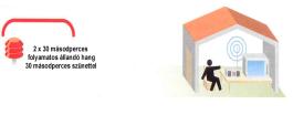 | Jelentése: A VESZÉLY ELMÚLT! 2 x 30 másodpercig tartó, egyenletes hangmagasságú szirénahang, a jelzések közötti 30 másodperces szünettel, amely jelzi a veszély elmúltát. | |