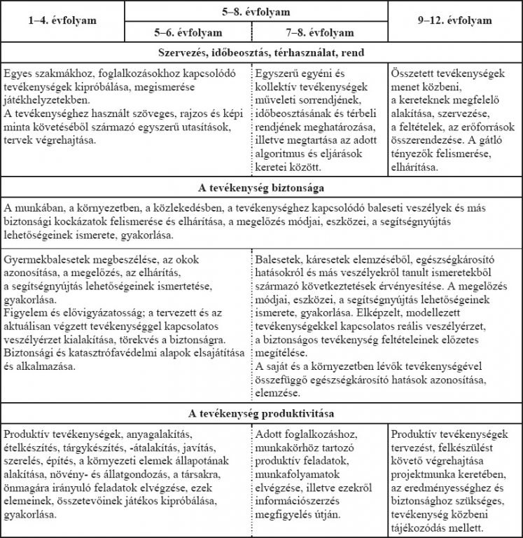 Életvitel és gyakorlat műveltségterület – Fejlesztési célok