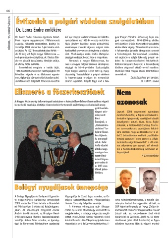 HÍREK, TUDÓSÍTÁSOK Dr. Lancz Endre címzetes egyetemi tanárt, ki Fejér megye fõállatorvosának és fõállatte- gyar Polgári Védelmi Szövetség Fejér me-