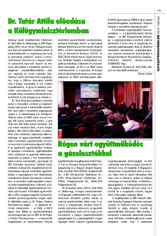 dr. Tatár Attila tû. altábornagy, az OKF fõigaz- amelynek fontosabb elemei: az éjjel-nappal döntéseket õ hozza meg. A sürgõsségi ka- KATASZTRÓFAVÉDELEM 2010. március