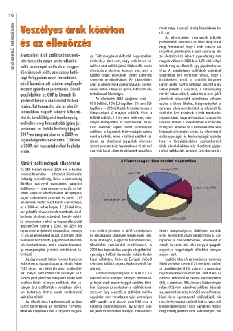 képest szintén jelentõs növekedést, mintegy árut szállító jármûvei az ADR szabályainak feltárt hiányosságokat idõközben pótolták.