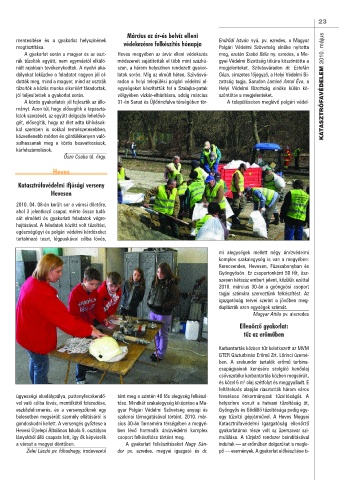 tûzoltók a közös munka sikeréért fáradoztak, egységeket készítettük fel a Szalajka-patak Helyi Védelmi Bizottság elnöke külön kö- KATASZTRÓFAVÉDELEM 2010. május