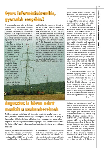 augusztus 19-én. Megállapodás született ar- ezer fogyasztónál okozott hosszabb ideig vethetõ a rendelkezésre álló javító kapacitás