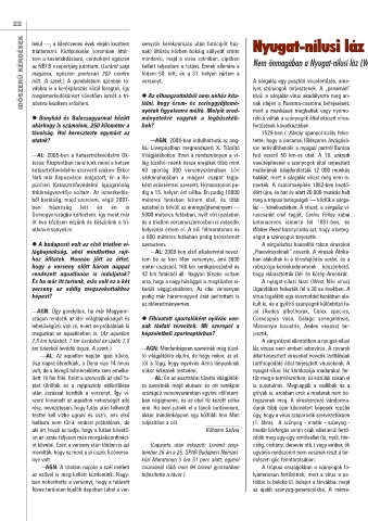 IDÕSZERÛ KÉRDÉSEK triatlonozni. Középiskolás koromban áttér- mindenki, majd a vizes zokniban, cipõben Nem önmagában a Nyugat-nílusi láz (W