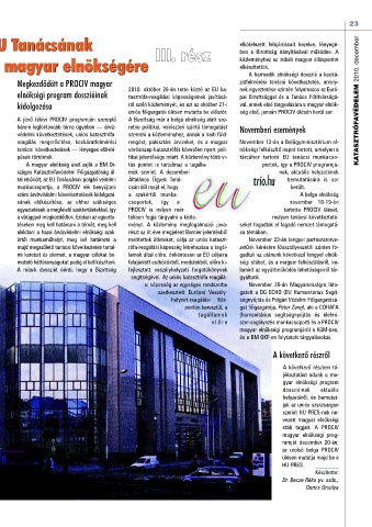 Megkezdõdött a PROCIV magyar 2010. október 26-án tette közzé az EU ka- zatfelmérési tanácsi következtetés, amely-