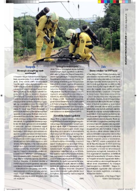 tő koncentrációt. A MÁV vegyi kárelhárító szolgá- házak tetőszerkezeteit, villanyvezetékeket, mindenki megtekert, jelezve a táborlakóknak,