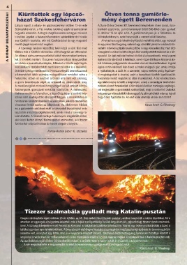 lángokkal a helyszínen. Az időben elhúzódó oltási munkálatok miatt a tűzoltók másnap reggeli szolgálatváltása is Katalin-pusztán volt.