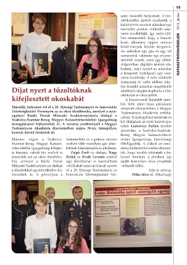 a tűzoltókkal együttműködve fej- védőkabát innovációjával nyerte A húszévesnél fiatalabb tanu-