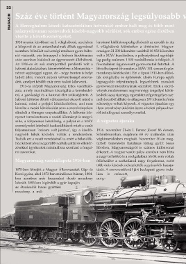 háború alakulásában, kimenetelében: a Monarchia – Bécs-Budapest fővonalon a MÁV 301 sorozatú gőz-
