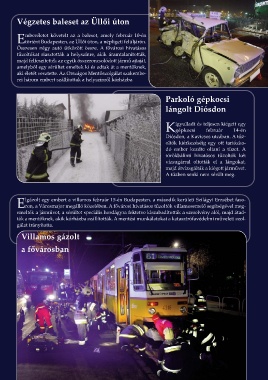 ron, a Városmajor megálló közelében. A fővárosi hivatásos tűzoltók villamosemelő segítségével meg-