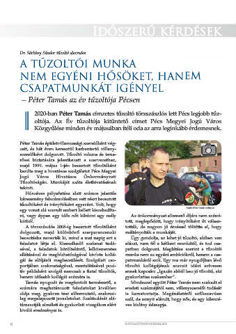 portjában szakmaiságával, mentalitásával pozi- tűzoltó kollégájának szavait idézi szívesen