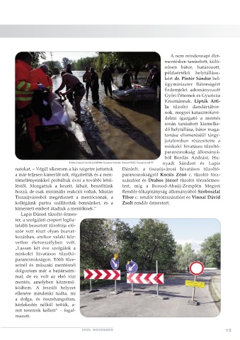 tőmellényeinkkel próbáltuk óvni a további lehű- szászlóst és Drahos József tűzoltó törzsőrmes-
