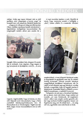 padlásra, ahol „megcsapta a korom szaga” és nevet, hogy mennyire szereti a kollégáit, a