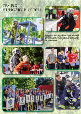 TFA-FCC HUNGARY-BÜK 2021 Szeptember 3-án tartották az ország legerősebb tűzoltója versenyt a Vas megyei Bükön. A viada- lon csaknem száz versenyző mérte össze kitartá- sát, sporttudását. RSOE - Tobak Ferenc