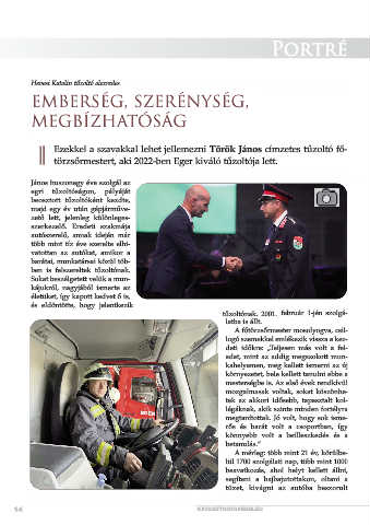 törzsőrmestert, aki 2022-ben Eger kiváló tűzoltója lett.