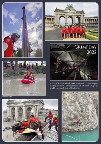 Grimpday 2022 A HUNOR kötéltechnikai csapata hetedik helyen végzett a világversenyen. A magyar tűzoltók elhozták a legvagá- nyabb csapatnak járó különdíjat is. Fotók: BM OKF HUNOR